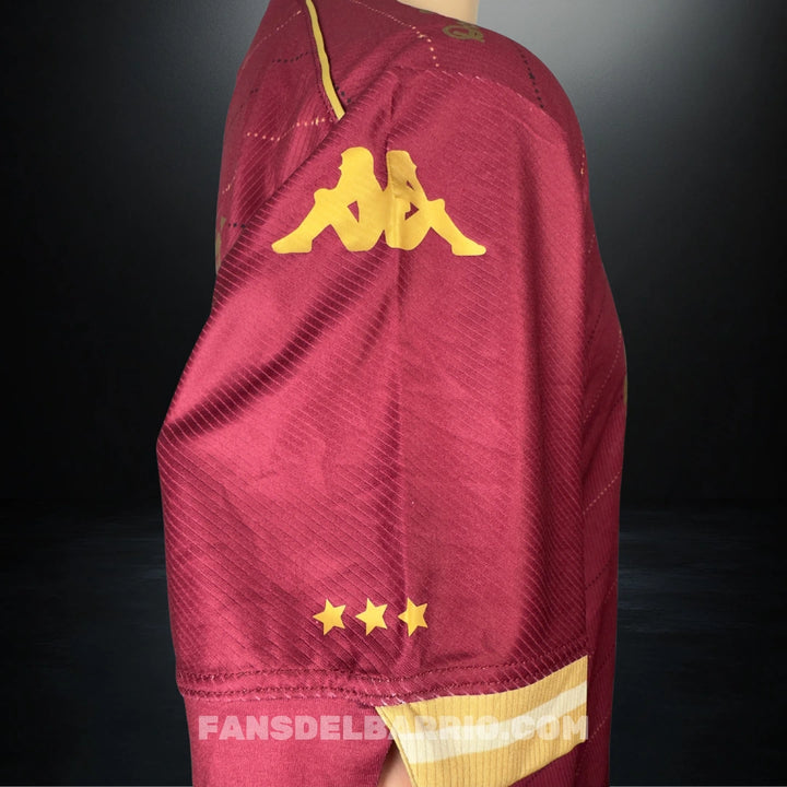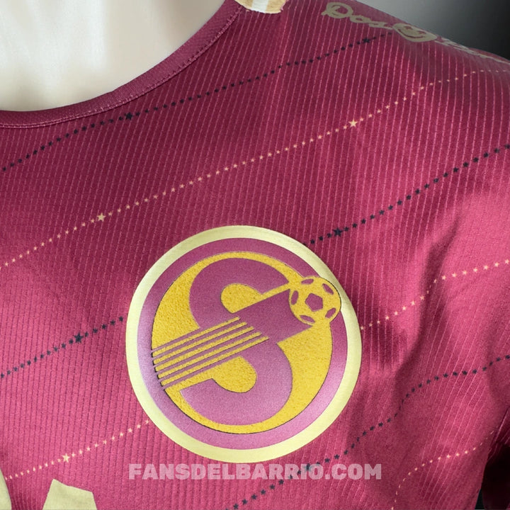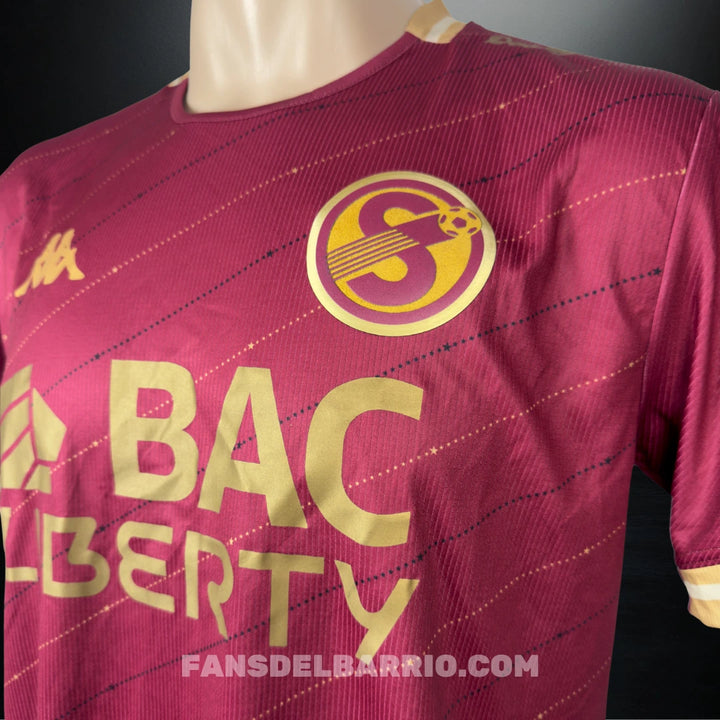 El escudo dorado brilla con fuerza sobre el pecho, acompañado de líneas de estrellas que recuerdan cada campeonato y cada hazaña alcanzada. Saprissa es reconocido como el equipo más ganador en menos años, sin renunciar jamás a su filosofía de fútbol.