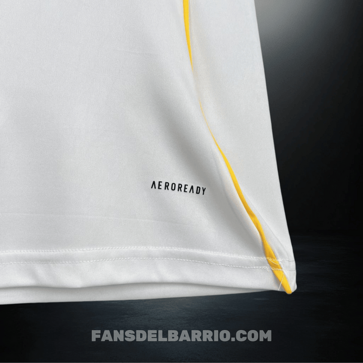 Inspirada en la nueva era del club, esta camiseta mantiene el escudo bordado en el pecho, las icónicas tres franjas de Adidas en negro sobre los hombros y el patrocinador Emirates Fly Better al centro. La tecnología AEROREADY asegura frescura y comodidad, ideal tanto para ir al estadio como para llevar el orgullo blanco día a día.