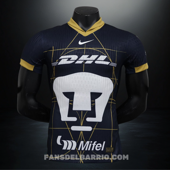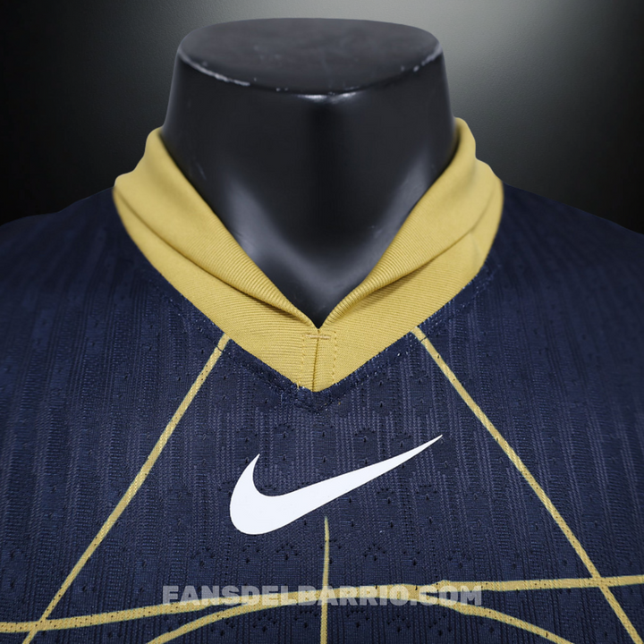 Inspirada en la garra universitaria y el orgullo azul y oro, esta camiseta de visita Pumas UNAM 2024/25 versión Player es una declaración de identidad para los fanáticos del Club Universidad Nacional. Con un diseño moderno, ajustado al cuerpo y con materiales de alto rendimiento, esta versión es idéntica a la que usan los jugadores en la cancha.